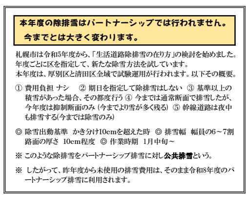今冬に実施する生活道路排雪日程